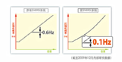 再次:在這個產(chǎn)品上,東芝還創(chuàng)下了一個業(yè)內(nèi)之最,就是能把東芝空調(diào)的精度控制從原來的0.6HZ提升精確到0.1HZ。在精確、實時的應(yīng)對容量需求變化的同時,降低了變頻變化產(chǎn)生的能耗損失,并創(chuàng)造了對應(yīng)最小的溫度變化的舒適環(huán)境。